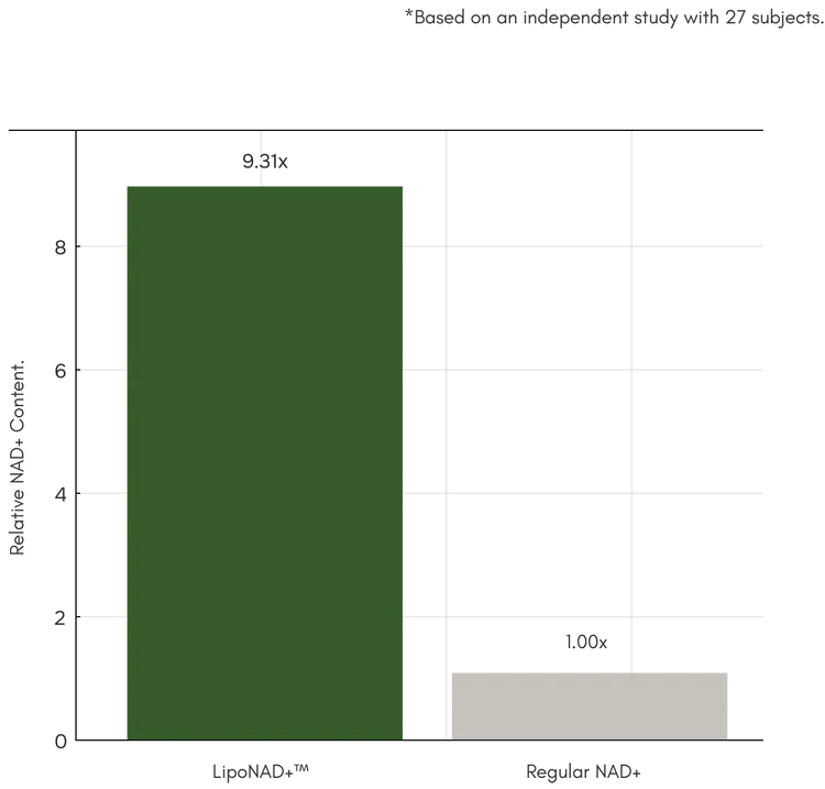 In a preclinical animal study, our LipoNAD™ preserved NAD+ levels in the liver at 9.31x higher than regular NAD+**